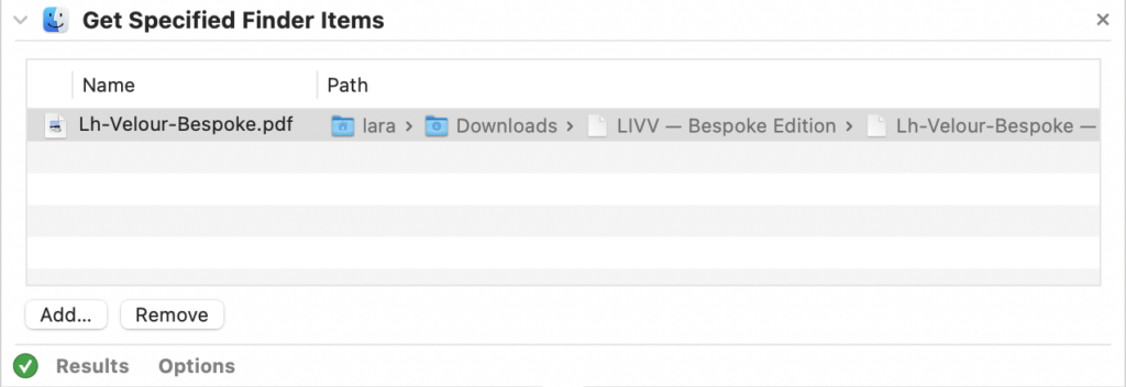 - Get Specified Finder Items: This action allows you to select the PDF file(s) you want to convert. Click “Add” to locate and select your PDF file in Finder.