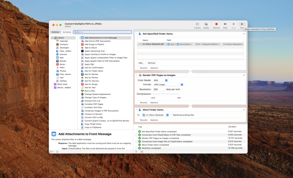 After setting up your actions, simply run the workflow. Automator will process your PDF, converting each page into an individual image and saving them to your specified folder. This method has saved me countless hours, allowing me to quickly upload the images into Canva for easy selection and use in all my designs.